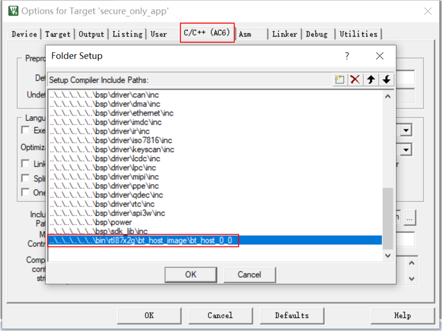 When using the Bluetooth Host image, the APP should add the directory of the corresponding bt_host_config.h file to the Include Paths.