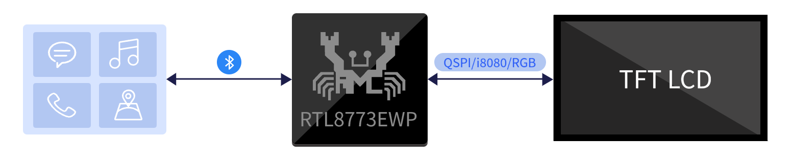 The dashboard example described in this document uses the RTL8773EWP chip, paired with the EQT500BYZ048G RGB (800 by 400) display screen. If developers choose to use the default hardware environment described in this document, they can directly run the example project.