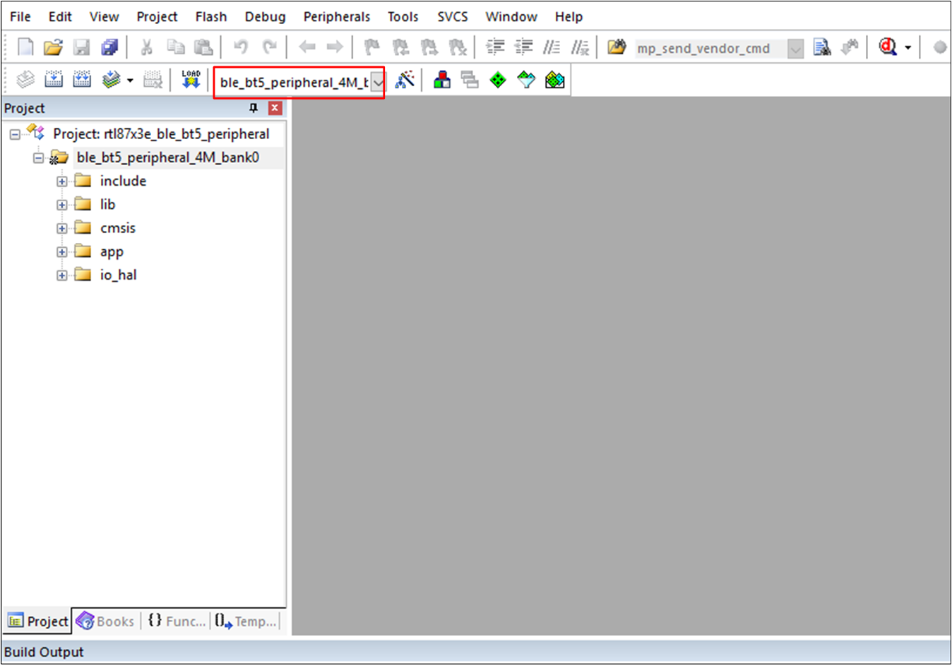 and target ble_bt5_peripheral_4M_bank0 as an example, to build and run the sample with Keil development environment, follow the steps listed below: