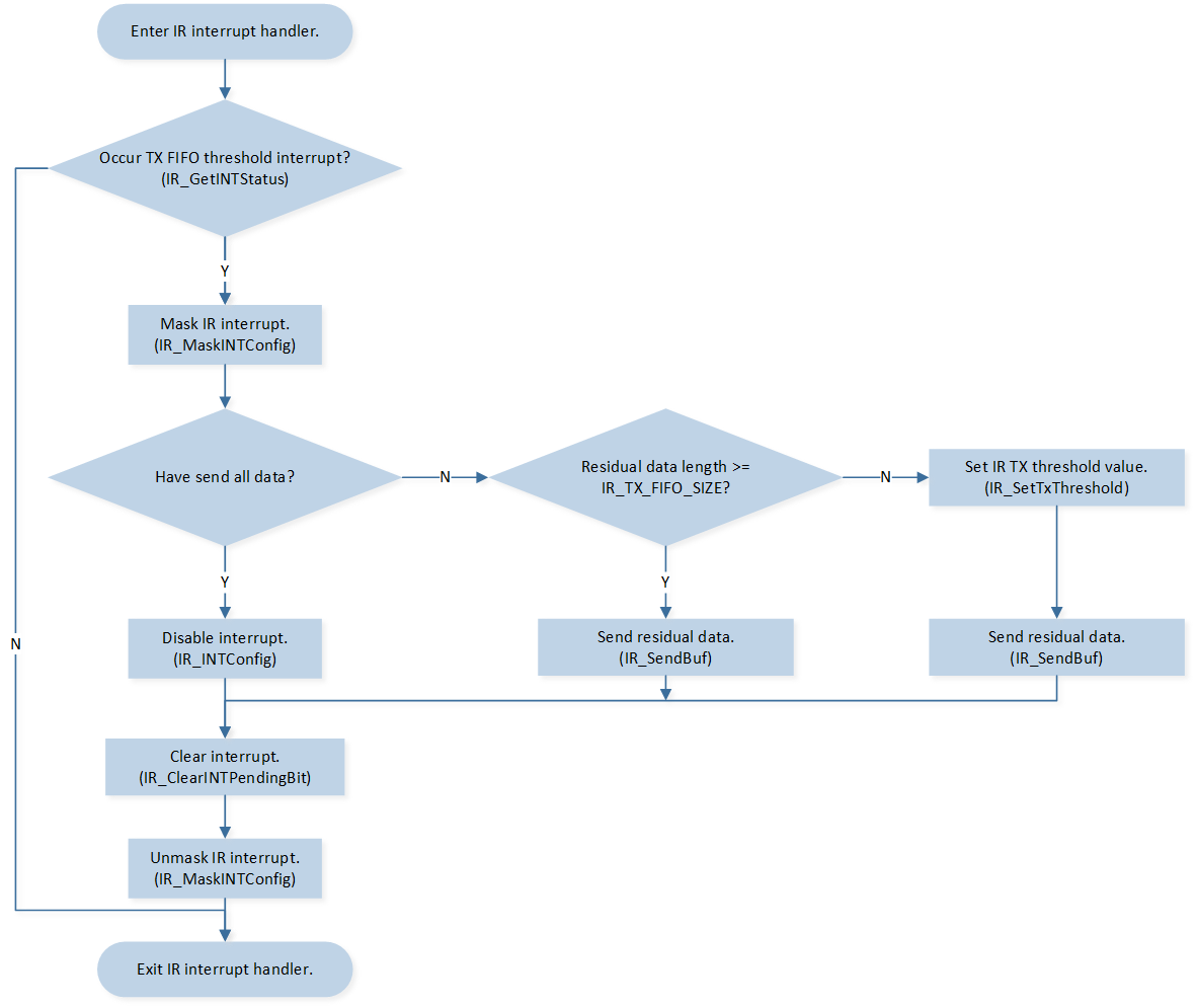 IR_MaskINTConfig()to mask the IR transmit FIFO to reach threshold interruptIR_INT_TF_LEVEL.-