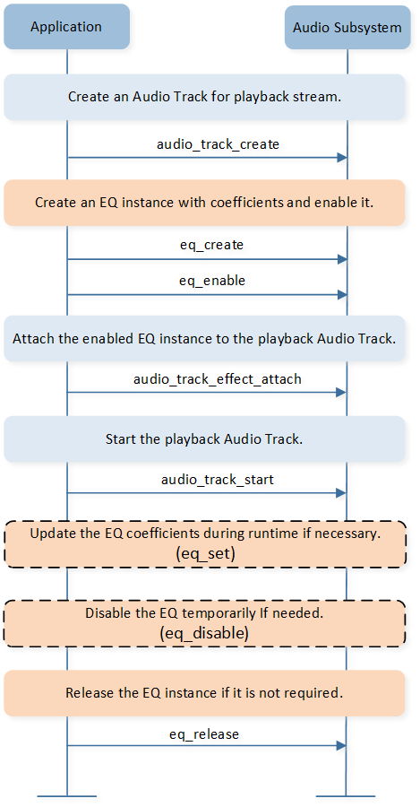 to enable it. Then, the Application calls audio_track_effect_attach() to attach the EQ to the target playback