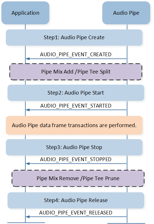 Then, the Application can call the audio_pipe_start() to start the Audio Pipe and the