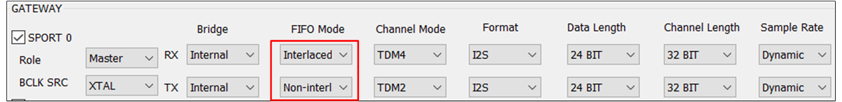 SPORT0/1/2/3 and SPDIF0 through MCUConfig Tool. Each Gateway shall have two directions, including TX