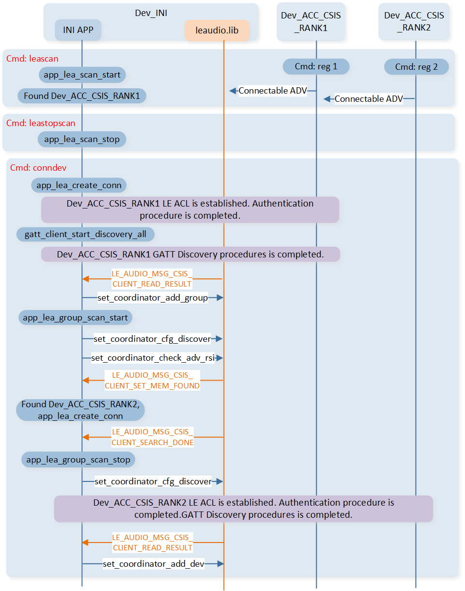 Discovery and connect Acceptor Role device with CSIS flow is shown below: