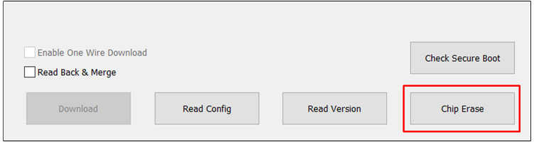 MPPGTool.exe, as shown in the following figure. For specific operation steps and file paths, refer to MPPG Tool Download.Click Chip Erase to erase the chip before downloading.