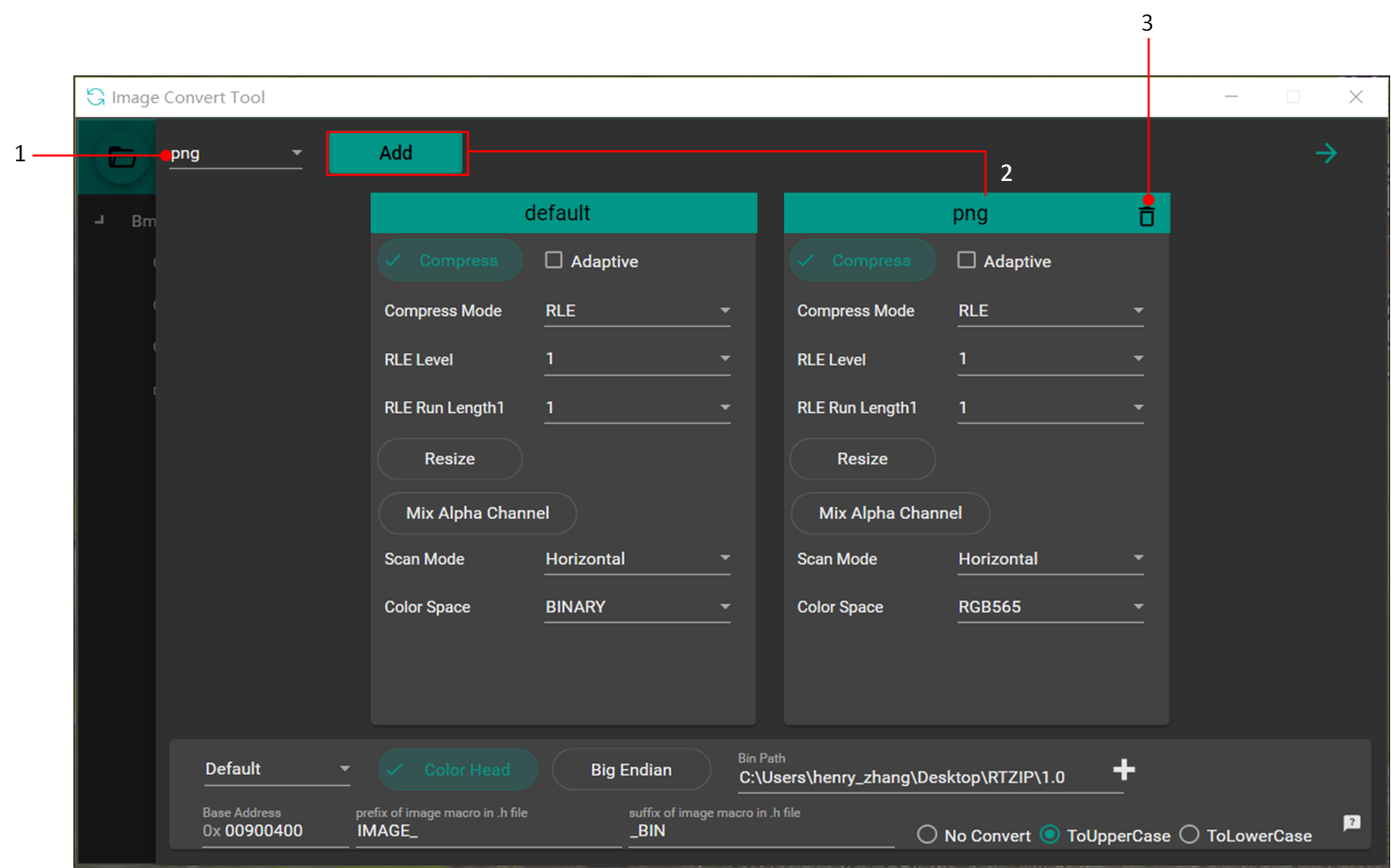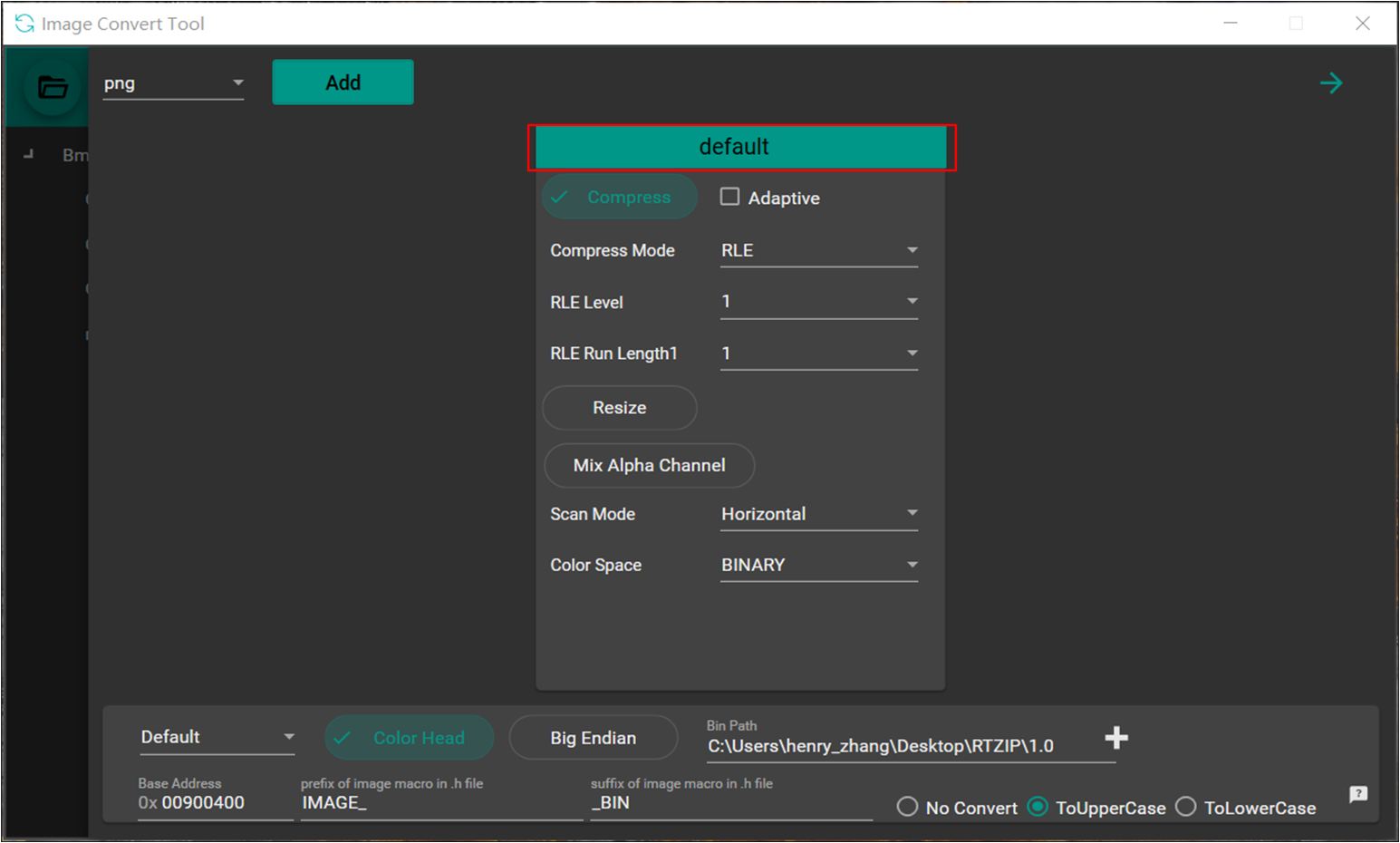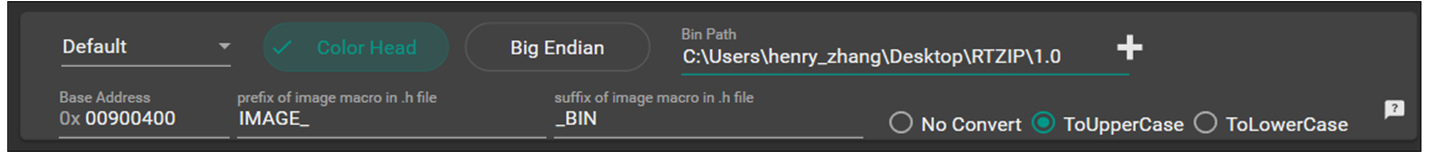 Color Head: Whether to add header information to converted images (default: checked).Realtek SoCs require this header for image parsing and display.