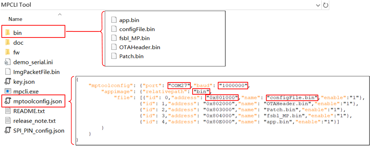 mpcli.exe –c comX –P packedimage.bin --spi_pin_config_json SPI_PIN_config.json –r