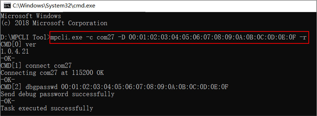 命令示例:./mpcli -c /dev/tty.usbserial-XXXX -r