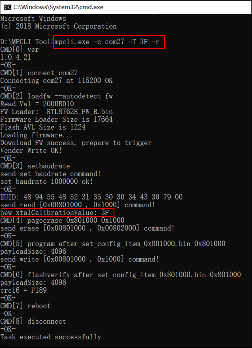 mpcli.exe的运行日志:执行成功时,打印出日志 Task executed successfully