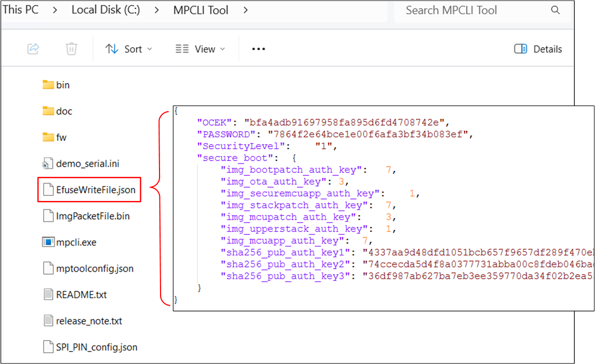 mpcli.exe –c comX –a –f fileconfig.json --spi_pin_config_json SPI_PIN_config.json –r