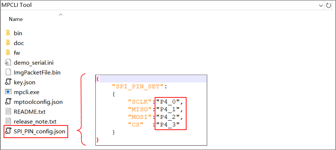 SPI_PIN_config.json文件,更新其中 SCLK、MISO、MOSI 和 CS 对应的引脚配置使用