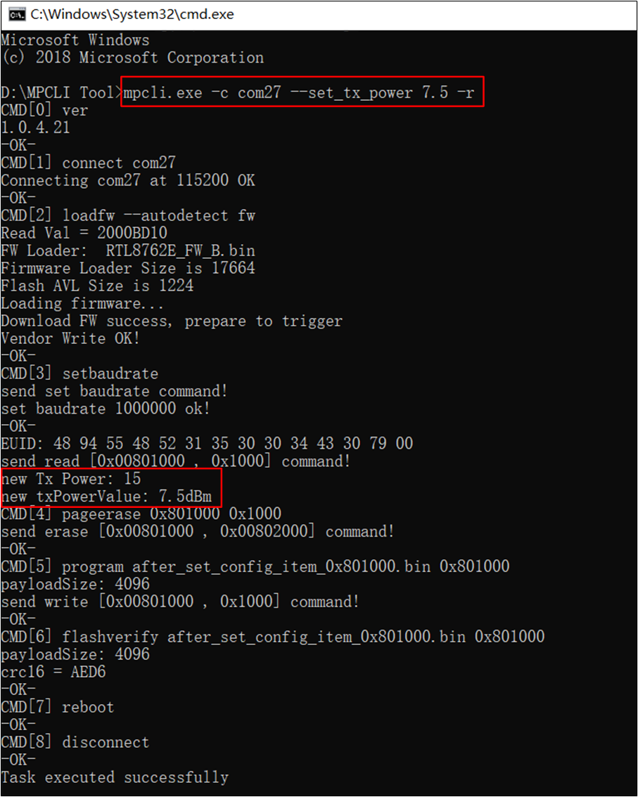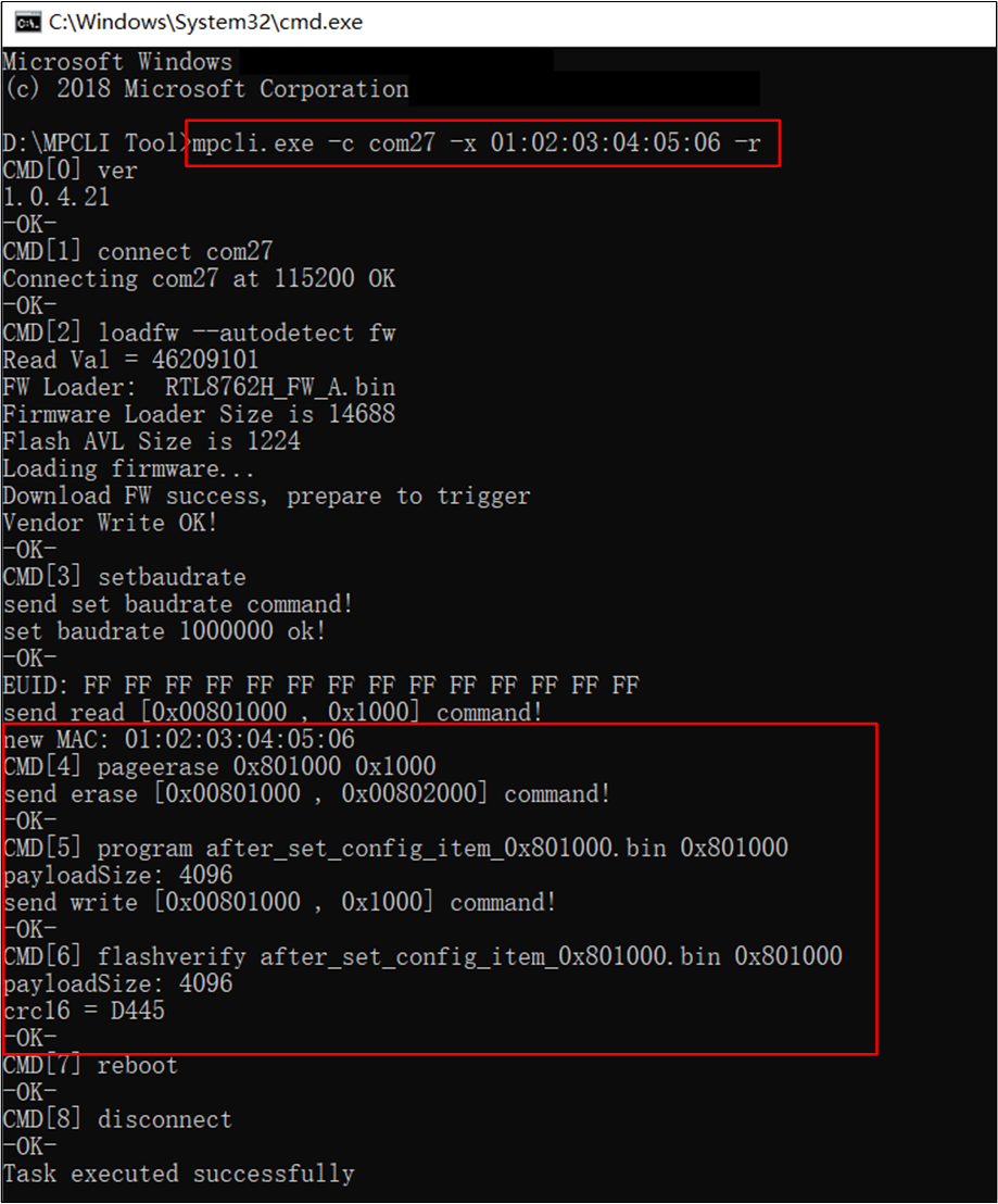 mpcli.exe:When executed successfully, print the log Task executed successfully