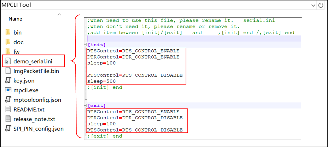 mpcli.exeautomatically loads the firmware file from thefwfolder according to the IC type. Users must not modify or delete thefwfile in the release package.
