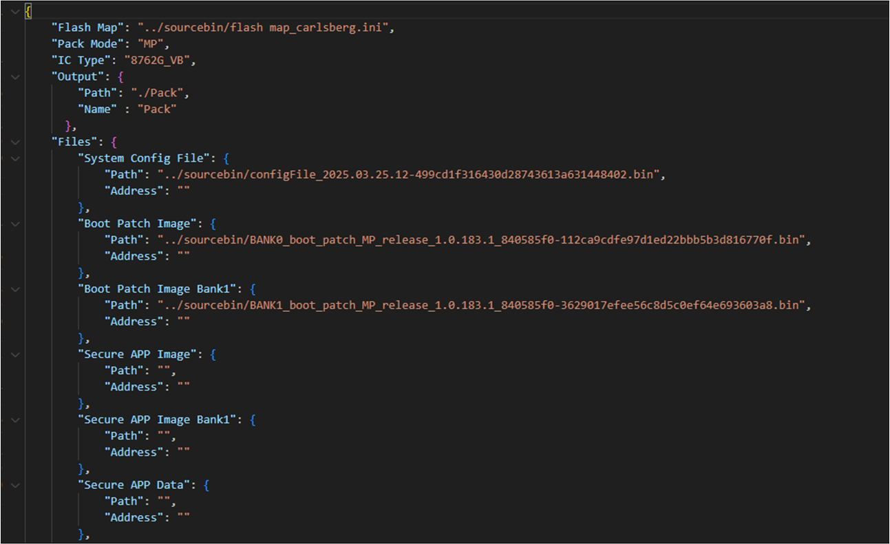 使用 JSON 文件配置打包 :使用 JSON 文件配置打包指的是通过 JSON 文件配置打包的参数,包括打包格式、打包的文件路径、输出路径等等,PackCli 会读取这些参数,并按参数配置执行打包。